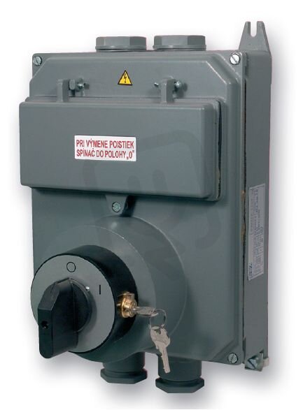 Vačkový spínač v hliníhové skříni s pojistkami, uzamykatelný 25A, 0-1, 3P