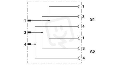 Rozvodka Y, 3-pólový, nestíněný, Zástrčka přímo M8, kódování: A, na Zásuvka přímo M8, kódování: A a Zásuvka přímo M8, kódování: A, paralelní rozvodka
