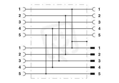 Rozvodka H, 5-pólový, stíněná, Zástrčka přímo M12, kódování: A, na Zásuvka přímo M12, kódování: A a Zásuvka přímo M12, kódování: A, Závit M12 neotočný, paralelní rozvodka