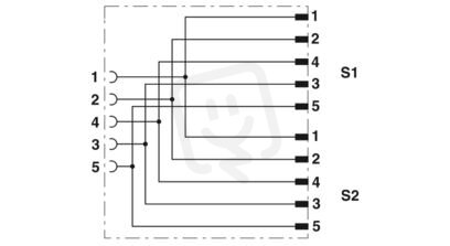 Rozvodka Y, 5-pólový, stíněná, Zásuvka přímo M12 SPEEDCON, kódování: A, na Zástrčka přímo M12 SPEEDCON, kódování: A a Zástrčka přímo M12 SPEEDCON, kódování: A, paralelní rozvodka