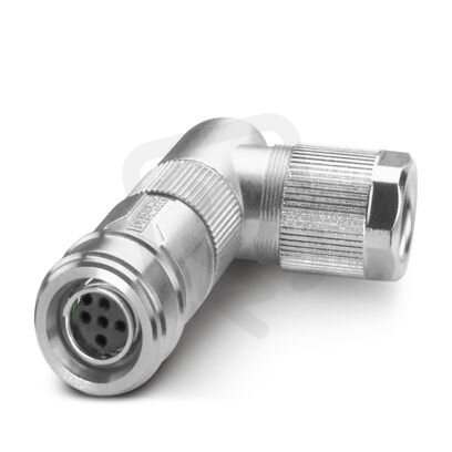 Konektor, Univerzální, 5-pólový, stíněná, Zásuvka úhlový M12 Push-Pull, kódování: A, Lisovaný spoj, rýhovaný materiál: Zinkový odlitek, niklovaný, vnější průměr vedení 4,5 mm ... 7,5 mm, bez lisovacích dutinkových kontaktů