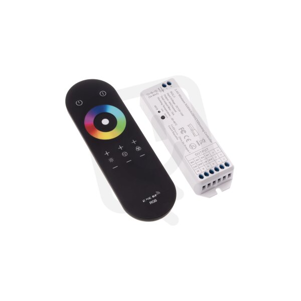 Tento jednokanálový RF stmívač a vypínač umožňuje pohodlné dálkové ovládání i ovládání barvy a jasu RGB LED produktů na 12-24V DC jako jsou RGB LED pásky, RGB LED moduly a další. Díky radiofrekvenční technologii není nutná přímá viditelnost mezi ovladačem a přijímačem, což umožňuje skrytí přijímače za zdí, sádrokartonem nebo ve skříni.