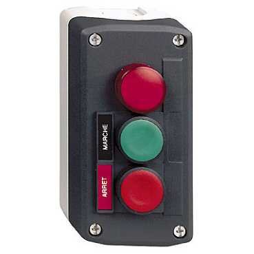 SchneiderxALD361B Ovládací skříň třítlačítková,1 Z-zelená,1V- červená,kontrolka
