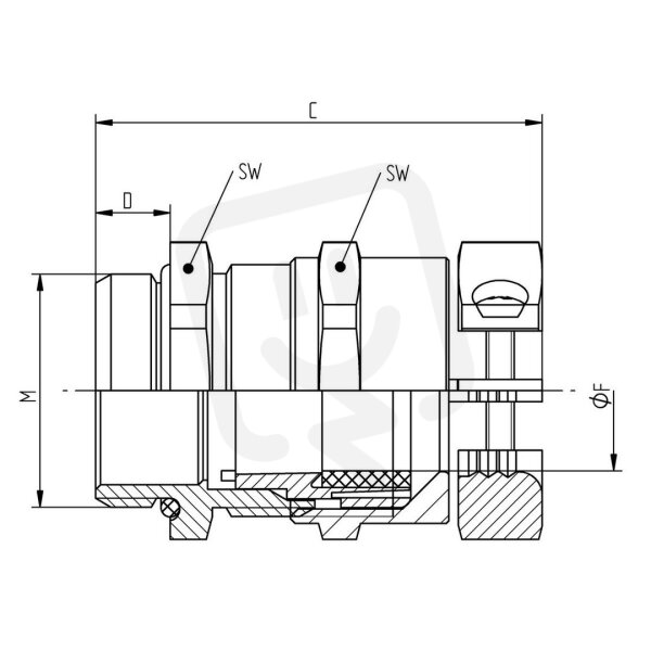 Použití: Velký, variabilní rozsah sevření pro různé vnější průměry kabelů; Upevnění kabelu pomocí dvojitého třmenu nad kloboukovou maticí umožňuje mnohem větší odlehčení tahu než u běžných kabelových vývodek, a to i při mechanickém namáhání; Šetrné sevření kabelu díky vysoké pružnosti materiálu těsnicí vložky ; Optimální utěsnění pomocí O-kroužku a těsnicího kroužku umožňuje stupeň krytí IP 68 (10 barů) a IP 69
