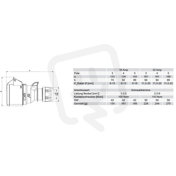 spojka 3-pólová, 16A / 230V, 6h, IP44, č