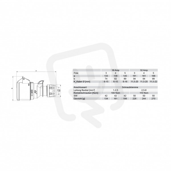 spojka 3-pólová, 16A / 400V, 9h, IP44
