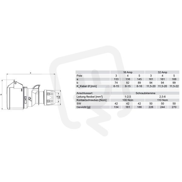 spojka 3-pólová, 32A / 230V, 6h, IP44, č