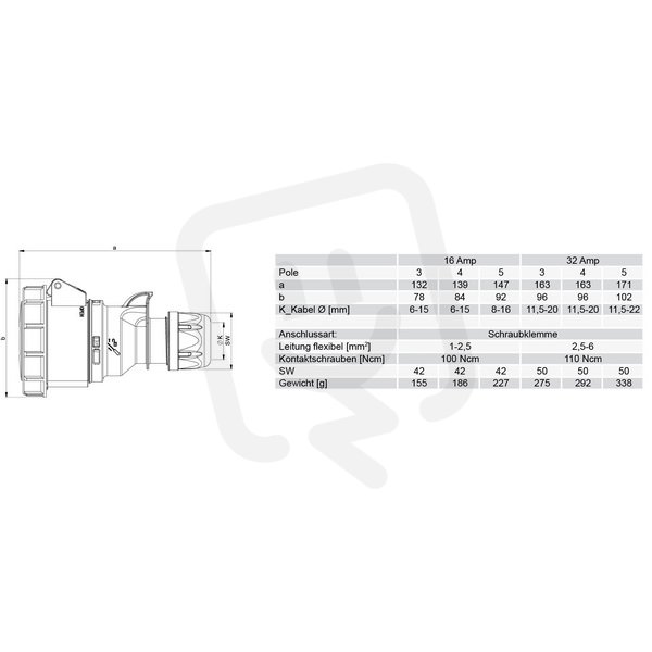 spojka 4-pólová, 32A / 500V, 4h, IP67