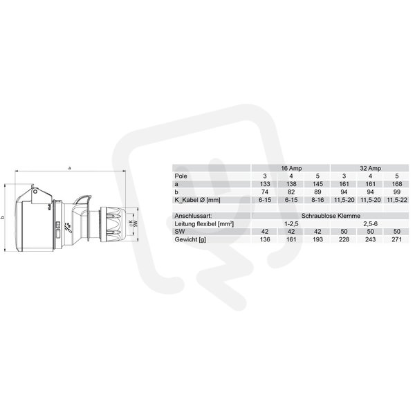 spojka 5-pólová, 32A / 400V, 6h, IP44, b