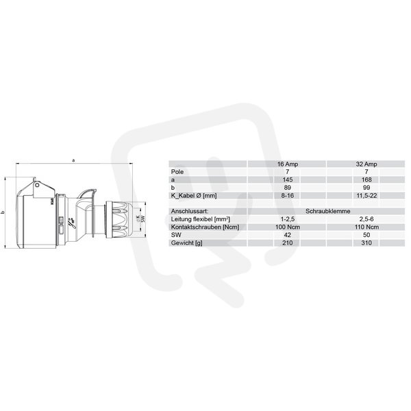 spojka 7-pólová, 16A / 400V, 6h, IP44, n