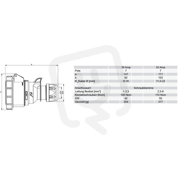 spojka 7-pólová, 32A / 400V, 6h, IP67, n