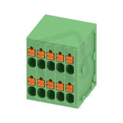 Nevyměnitelná svorka desky s plošnými spoji, jmenovitý proud: 10 A, jmenovité napětí (III/2): 200 V, jmenovitý průřez: 1,5 mm², počet potenciálů: 10, počet řad: 2, počet pólů na řadu: 5, řada výrobků: SPTD 1,5, rozteč: 3,5 mm, typ připojení: Pružinové připojení push in, montáž: Vlnové pájení, směr připojení vodič/deska: 0 °, barva: zelená, Pin-Layout: Lineární pinning, Délka pinu [P]: 3,5 mm, počet pájecích kolíků na každý potenciál: 1, způsob balení: zabaleno v krabici