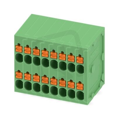 Nevyměnitelná svorka desky s plošnými spoji, jmenovitý proud: 10 A, jmenovité napětí (III/2): 200 V, jmenovitý průřez: 1,5 mm², počet potenciálů: 16, počet řad: 2, počet pólů na řadu: 8, řada výrobků: SPTD 1,5, rozteč: 3,5 mm, typ připojení: Pružinové připojení push in, montáž: Vlnové pájení, směr připojení vodič/deska: 0 °, barva: zelená, Pin-Layout: Lineární pinning, Délka pinu [P]: 3,5 mm, počet pájecích kolíků na každý potenciál: 1, způsob balení: zabaleno v krabici