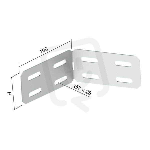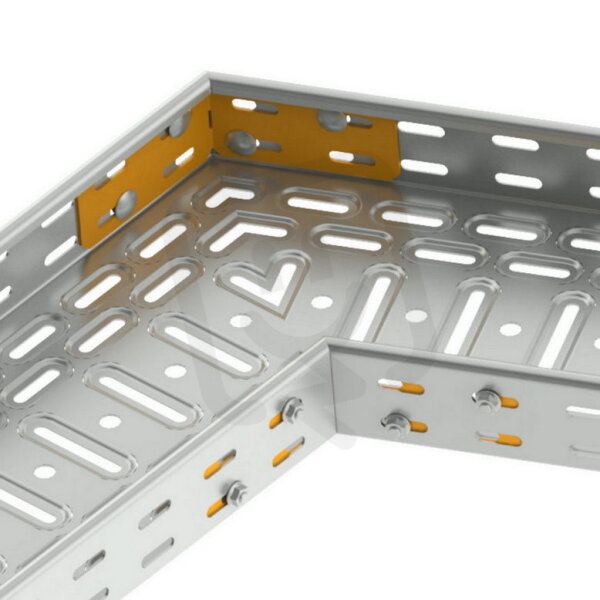 Spojka úhlová je určená pro vytvoření libovolného úhlu u horizontálně vedené kabelové trasy s výškou bočnice 35 mm. Povrchová úprava geomet je určená k trasám žárově zinkovaným ponorem.