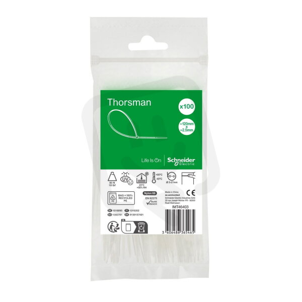 Stahovací páska, Thorsman, 120x2.5, čirá, balení 100 ks SCHNEIDER IMT46403