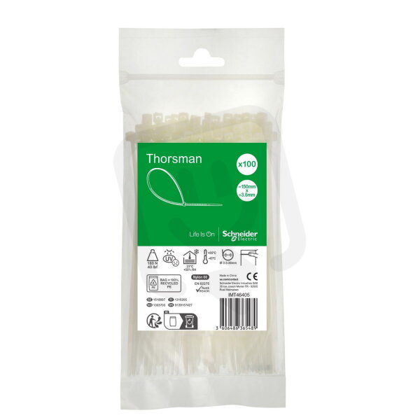 Stahovací páska, Thorsman, 150x3.6, čirá, balení 100 ks SCHNEIDER IMT46405