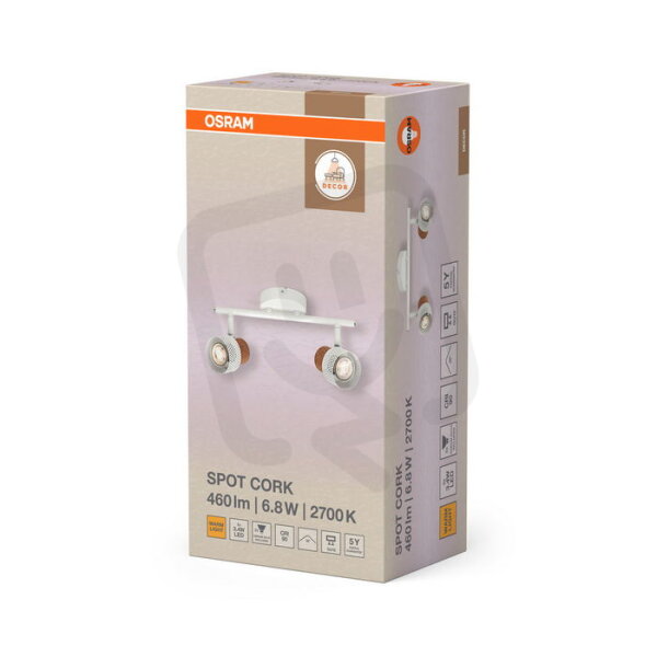 DECOR SPOT CORK 2X3.4W 927 GU10 WT OSRAM najdete v kategoriích Svítidla, Stropní a nástěnné svítidlo, Svítidla, světelné zdroje a LED osvětlení, výrobce Osram, EAN 4099854470752, kód dodavatele 4099854470752. Stropní svítidlo LEDVANCE DECOR SPOT CORK WHITE 2x3.4W 927 DIM nabízíme od 1 ks. Kód EMAS DECOR SPOT CORK 2X3.4W 927 GU10 WT OSRAM je ELOSOS1985934.