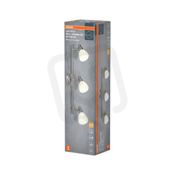 LED SPOT 3X1.9W 827 G9 OSRAM najdete v kategoriích Svítidla, Stropní a nástěnné svítidlo, Svítidla, světelné zdroje a LED osvětlení, výrobce Osram, EAN 4099854473326, kód dodavatele 4099854473326. Stropní svítidlo LEDVANCE LED SPOT G9 G9 3 x 1.9W 2700K nabízíme od 1 ks. Kód EMAS LED SPOT 3X1.9W 827 G9 OSRAM je ELOSOS1985971.