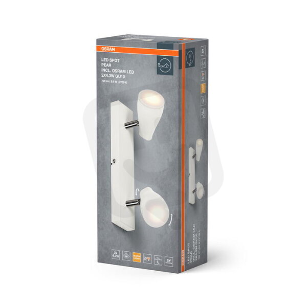 LED SPOT PEAR 260MM2X4.3W827GU10WT OSRAM najdete v kategoriích Svítidla, Stropní a nástěnné svítidlo, Svítidla, světelné zdroje a LED osvětlení, výrobce Osram, EAN 4099854473784, kód dodavatele 4099854473784. Stropní svítidlo LEDVANCE LED SPOT PEAR WHITE 2 x 4.3W 2700K GU10 nabízíme od 1 ks. Kód EMAS LED SPOT PEAR 260MM2X4.3W827GU10WT OSRAM je ELOSOS1985980.