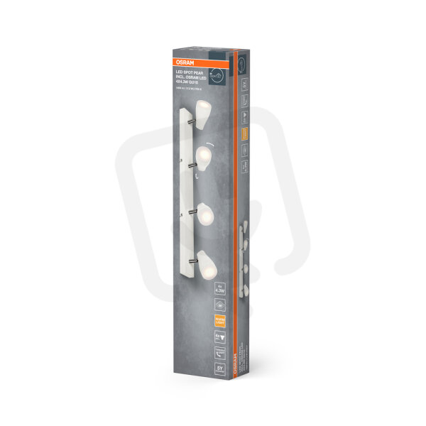 LED SPOT PEAR 600MM4X4.3W827GU10WT OSRAM najdete v kategoriích Svítidla, Stropní a nástěnné svítidlo, Svítidla, světelné zdroje a LED osvětlení, výrobce Osram, EAN 4099854473821, kód dodavatele 4099854473821. Stropní svítidlo LEDVANCE LED SPOT PEAR WHITE 4 x 4.3W 2700K GU10 nabízíme od 1 ks. Kód EMAS LED SPOT PEAR 600MM4X4.3W827GU10WT OSRAM je ELOSOS1985982.