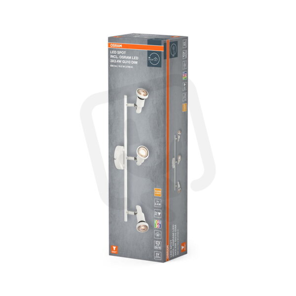 LED SPOT 3X3.4W 927 GU10 WT OSRAM najdete v kategoriích Svítidla, Stropní a nástěnné svítidlo, Svítidla, světelné zdroje a LED osvětlení, výrobce Osram, EAN 4099854474576, kód dodavatele 4099854474576. Stropní svítidlo LEDVANCE LED SPOT WHITE 3 X 3.4W 927 DIM nabízíme od 1 ks. Kód EMAS LED SPOT 3X3.4W 927 GU10 WT OSRAM je ELOSOS1986013.