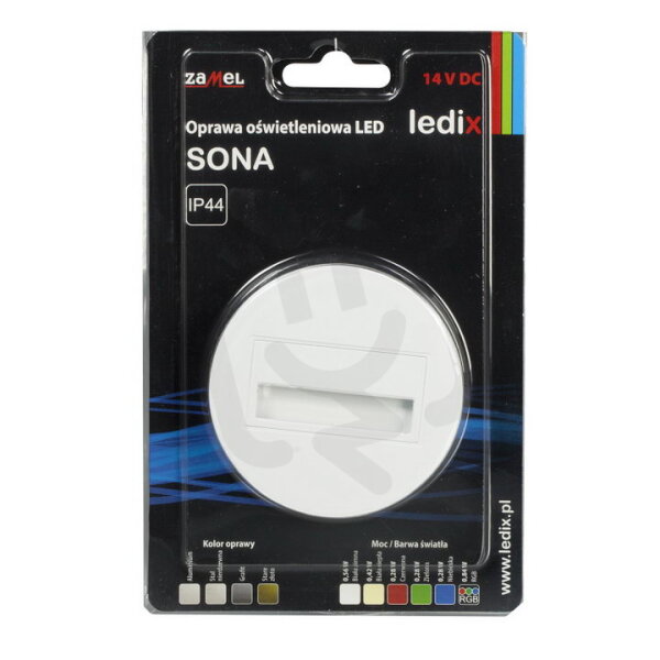Světlo LED SONA kulaté, pod omítku, 14Vs najdete v kategoriích Svítidla, Orientační a noční svítidlo, Orientační svítidlo, Svítidla, světelné zdroje a LED osvětlení, výrobce Zamel, EAN 5903669086888, kód dodavatele . Světlo LED SONA kulaté pod omítku 14Vss IP44 BÍLÁ RGB diody ZAMEL 13-211-56 nabízíme od 1 ks. Kód EMAS Světlo LED SONA kulaté, pod omítku, 14Vs je ELOSOS1343903.