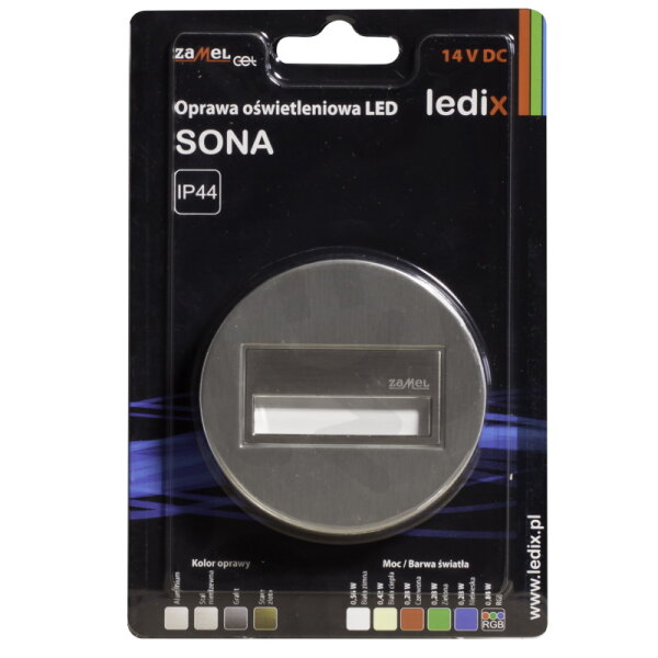 Světlo LED SONA kulaté, pod omítku, 14Vs najdete v kategoriích Svítidla, Orientační a noční svítidlo, Orientační svítidlo, Svítidla, světelné zdroje a LED osvětlení, výrobce Zamel, EAN 5903669063148, kód dodavatele . Světlo LED SONA kulaté pod omítku 14Vss IP44 NEREZOVÁ OCEL RGB diody 13-211-26 nabízíme od 1 ks. Kód EMAS Světlo LED SONA kulaté, pod omítku, 14Vs je ELOSOS1343891.