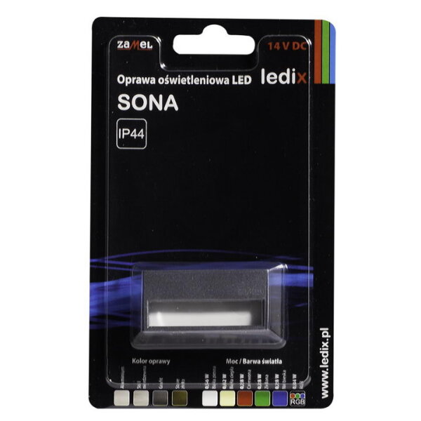 Světlo LED SONA, na omítku, 14Vss, IP44, najdete v kategoriích Svítidla, Orientační a noční svítidlo, Orientační svítidlo, Svítidla, světelné zdroje a LED osvětlení, výrobce Zamel, EAN 5903669062967, kód dodavatele . Světlo LED SONA, na omítku, 14Vss, IP44, GRAFIT, RGB diody ZAMEL 12-111-36 nabízíme od 1 ks. Kód EMAS Světlo LED SONA, na omítku, 14Vss, IP44, je ELOSOS1343872.