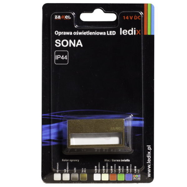 Světlo LED SONA, na omítku, 14Vss, IP44, najdete v kategoriích Svítidla, Orientační a noční svítidlo, Orientační svítidlo, Svítidla, světelné zdroje a LED osvětlení, výrobce Zamel, EAN 5903669062981, kód dodavatele . Světlo LED SONA na omítku 14Vss IP44 ZLATÁ PATINA TEPLÁ BÍLÁ ZAMEL 12-111-42 nabízíme od 1 ks. Kód EMAS Světlo LED SONA, na omítku, 14Vss, IP44, je ELOSOS1343874.