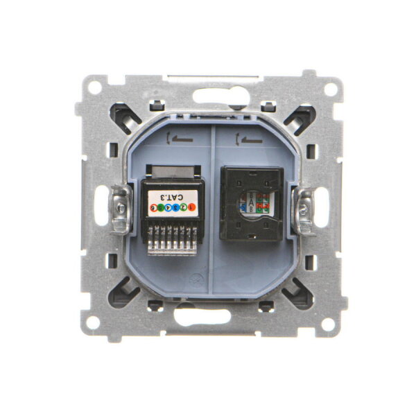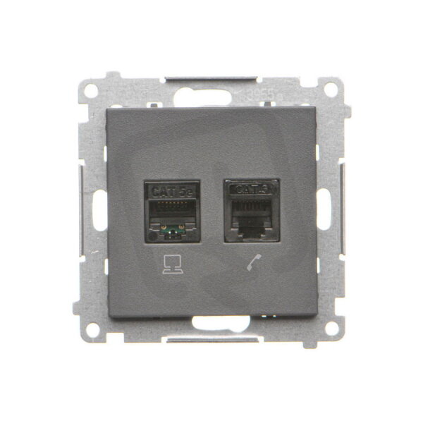 Zásuvka datová RJ45 kat. 5e + telefonní RJ12 (přístroj s krytem) grafitová matná