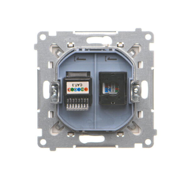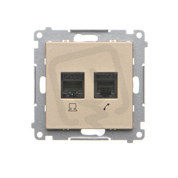 Zásuvka datová RJ45 kat. 5e + telefonní RJ12 (přístroj s krytem) champagne matná