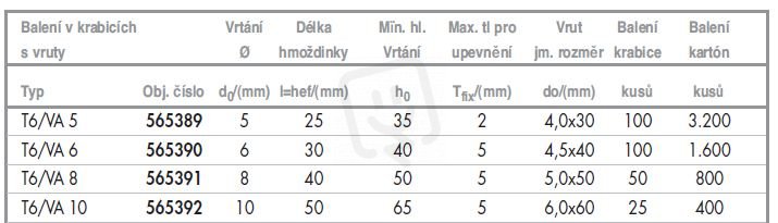 T6/VA hmoždinka univ.10x50mm se šroubem