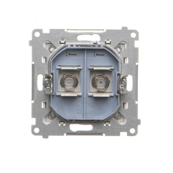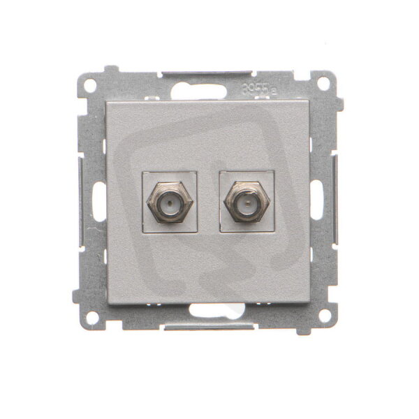 Zásuvka anténní 2 násobná typ „F” (přístroj s krytem), pro jednotlivé instalace hliníková matná