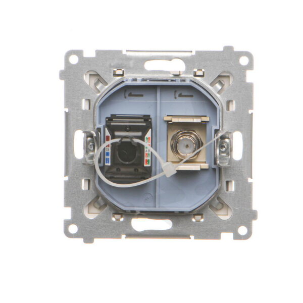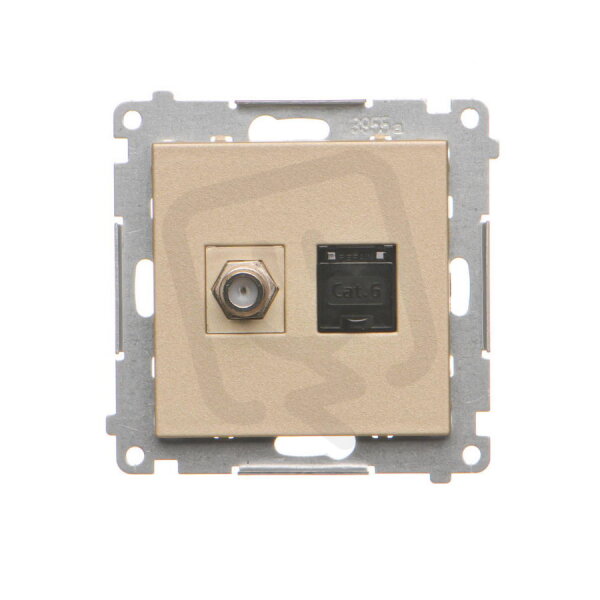Zásuvka anténní typ F + datová RJ45 kat. 6 (přístroj s krytem) champagne matná