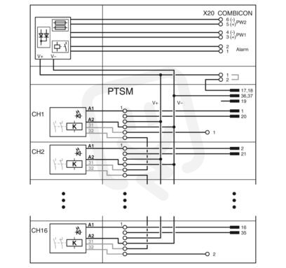 Univerzální Termination Carrier k redundantnímu připojení 16 modulů PSR-FSP k digitálním výstupním kartám, přes dva konektory D-SUB, 37pólové (spojení 1:1). Řešení pro aplikace Emergency Shut Down (ESD).