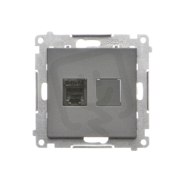 Zásuvka telefonní RJ12, 1 násobná (přístroj s krytem) grafitová matná