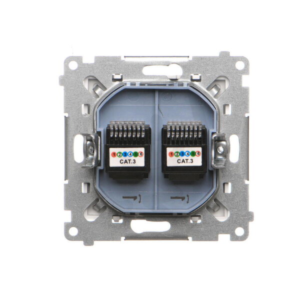 Zásuvka telefonní RJ12, 2 násobná (přístroj s krytem) bílá matná TF2.01/111