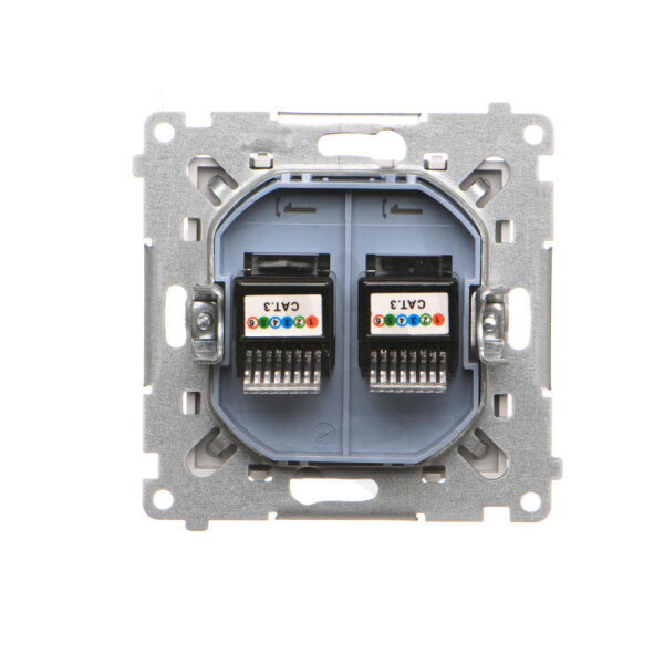 Zásuvka telefonní RJ12, 2 násobná (přístroj s krytem) světle šedá matná