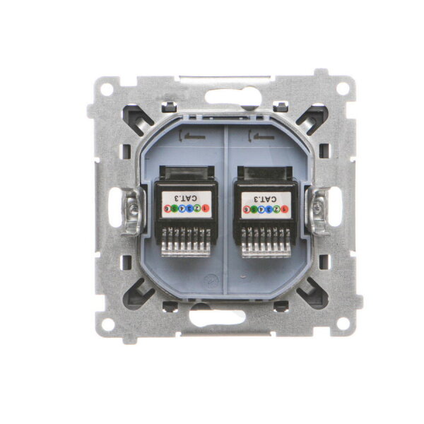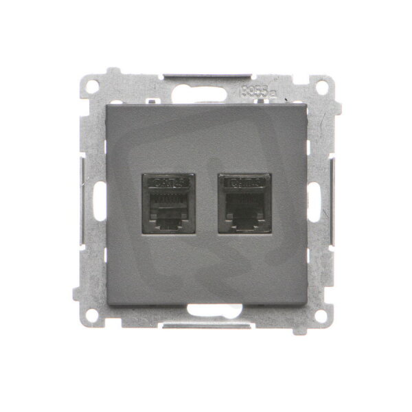 Zásuvka telefonní RJ12, 2 násobná (přístroj s krytem) grafitová matná
