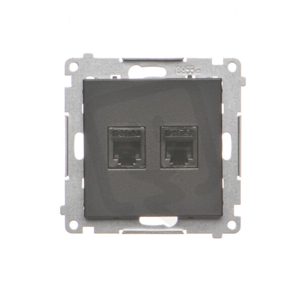 Zásuvka telefonní RJ12, 2 násobná (přístroj s krytem) černá matná TF2.01/149