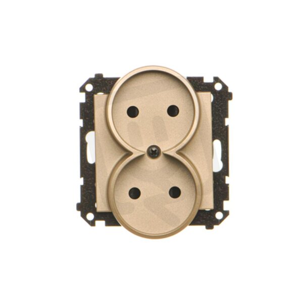 Zásuvka 2 násobná, bez uzemnění, se clonkami champagne matná TG2MCZ.01/144