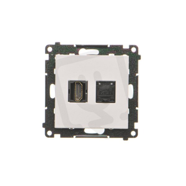 Zásuvka HDMI + datová RJ45 kat. 6 (přístroj s krytem) světle šedá matná