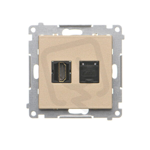 Zásuvka HDMI + datová RJ45 kat. 6 (přístroj s krytem) champagne matná