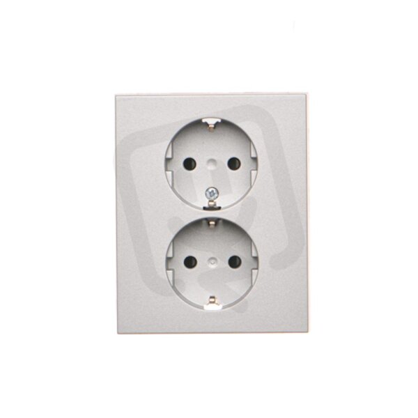 Zásuvka Schuko 2 násobná, se clonkami, 16A/250V, šroubové svorky hliníková matná
