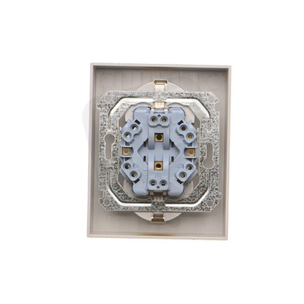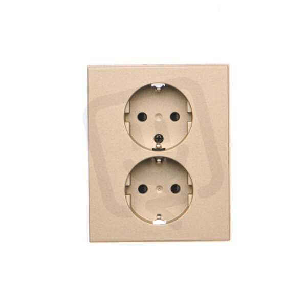 Zásuvka Schuko 2 násobná, se clonkami, 16A/250V, šroubové svorky champagne matná