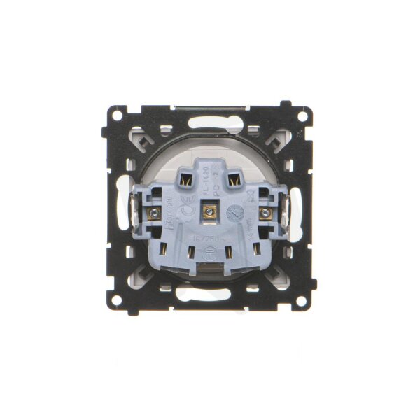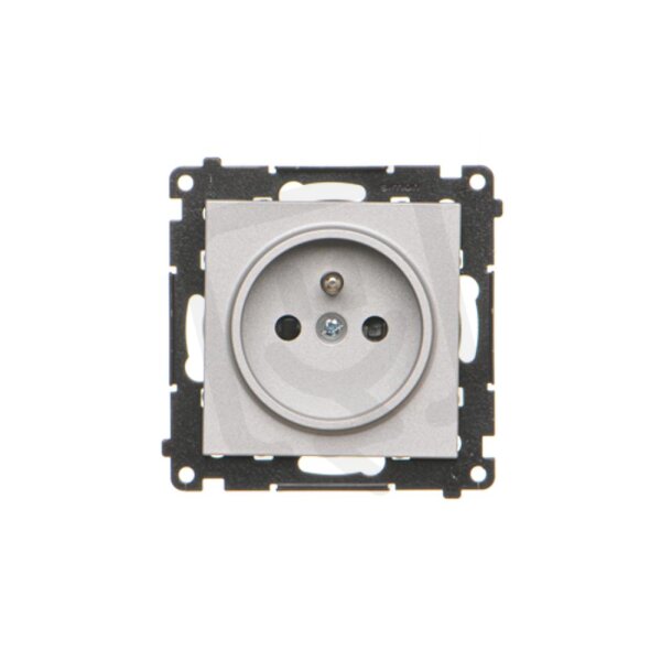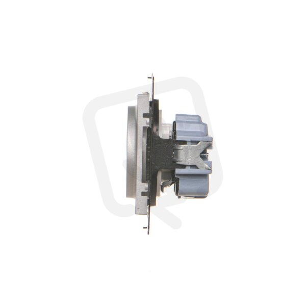 Zásuvka 1 násobná (přístroj s krytem), s uzemněním, se clonkami, 16 A / 250 V~, bezšroubové svorky hliníková matná