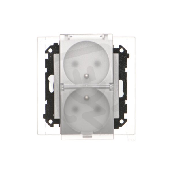 Zásuvka 1 násobná, IP44, s těsněním, průhledné víčko hliníková matná