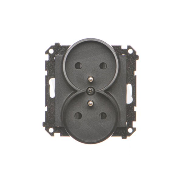 Zásuvka 2P+T 2 násobná, se clonkami černá matná KONTAKT SIMON TGZ2MCZ.01/149