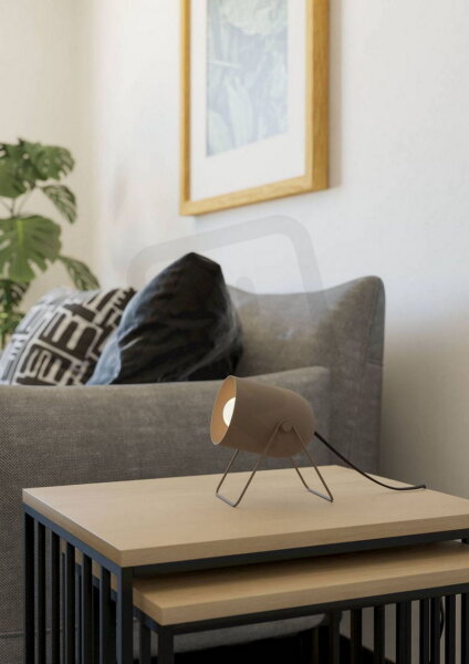 Stolní lampa TILSTON zaujme svým minimalistickým designem s nádechem industriálního šiku. Cylindrický stínidlo z pískově zbarveného kovu je umístěno na jasně strukturovaném drátěném rámu, který zajišťuje stabilitu a zároveň působí lehce. Stínidlo lze naklopit, takže směr světla lze individuálně nastavit – ideální pro čtení, práci nebo jako dekorativní bod na poličce. Jemné pískové zbarvení činí TILSTON univerzálně kombinovatelným a dodává každému prostoru stylový nádech. Lampa je vybavena paticí E14, která umožňuje použití různých světelných zdrojů. Černý textilní kabel vytváří vědomý kontrast k tělu lampy a moderně doplňuje design.