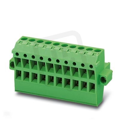 Konektor TWIN desky plošných spojů, jmenovitý průřez: 2,5 mm², barva: zelená, jmenovitý proud: 12 A, jmenovité napětí (III/2): 320 V, povrch kontaktů: Sn, typ kontaktu: Zásuvka, počet potenciálů: 9, počet řad: 1, počet pólů: 9, počet přípojek: 18, řada výrobků: TMSTBP 2,5/..-STF, rozteč: 5,08 mm, typ připojení: Šroubová svorka s tahovým pouzdrem, typ šroubového připojení: L Podélná štěrbina, směr připojení vodič/deska: 0 °, aretační zámek: - bez zajišťovacího háčku, systém zásuvných hlavic: COMBICON MSTB 2,5, zajištění: Šroubový zámek, způsob upevnění: Šroubová příruba, způsob balení: zabaleno v krabici, Pomocí zástrčky lze vodiče provádět od modulu k modulu